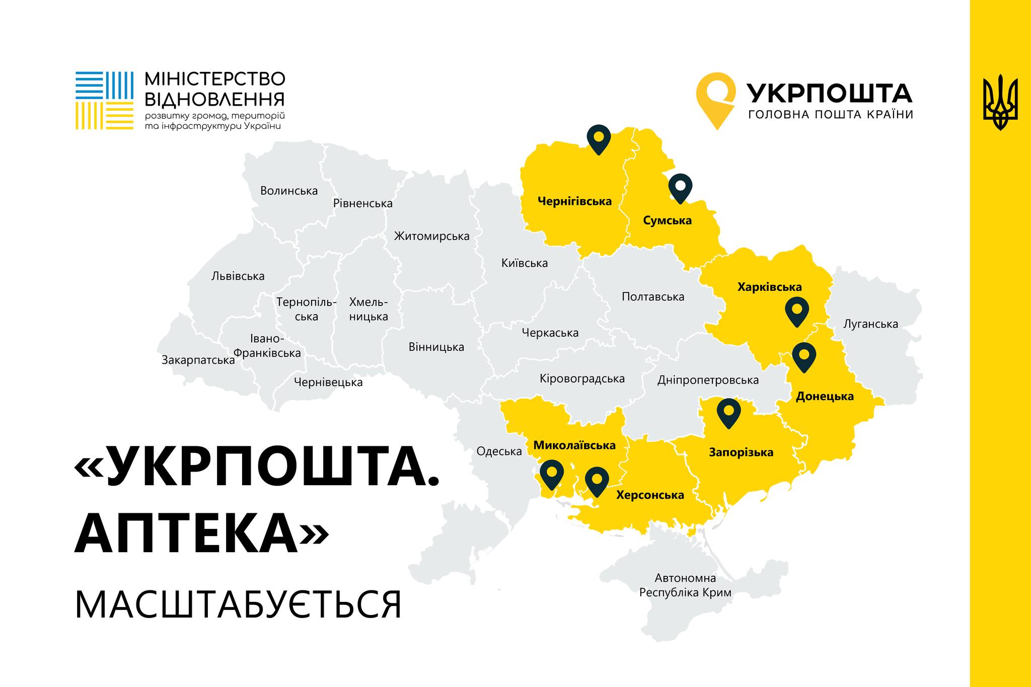 Пілотний проєкт «Укрпошта. Аптека» розширюється на прифронтові Запоріжжя, Миколаївщину, Харківщину, Херсонщину, Чернігівщину та всю Сумщину.